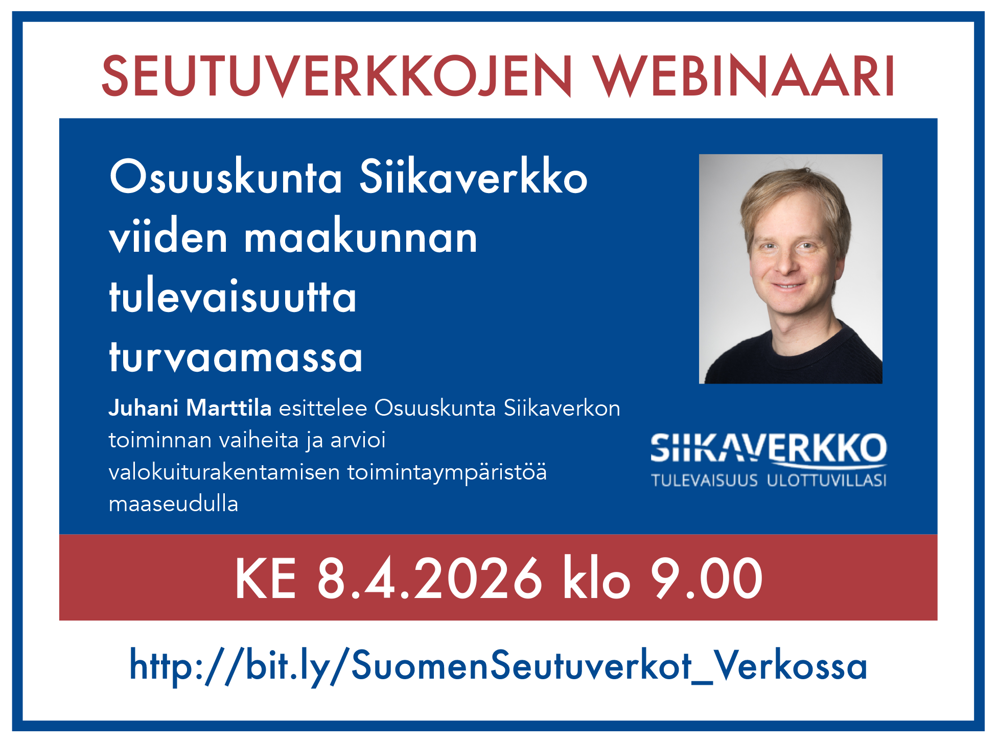 Pääsiäispyhien jälkeen on mukava tulla jälleen linjoille keskiviikkona 8.4.2026 klo 9, kun saamme rautaisannoksen tietoutta Osuuskunta Siikaverkkojen hallituksen puheenjohtajalta Juhani Marttilalta.