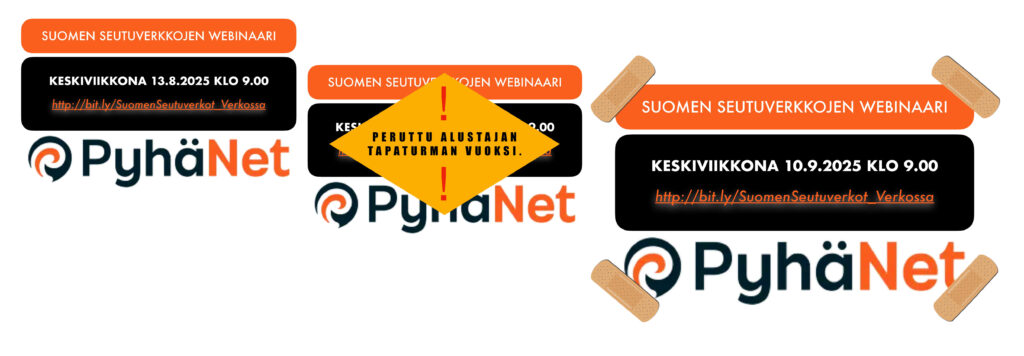 Seutuverkkojen webinaarien piti käynnistyä elokuussa PyhäNetin isännöimänä. Valitettavasti tilanne vaati webinaarin peruuttamista viime hetkellä ja se siirtyi syyskuulle.
